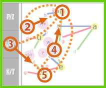 3.一音一音をなぞる (矢印はスライド / 矢印のない円はタッチ)